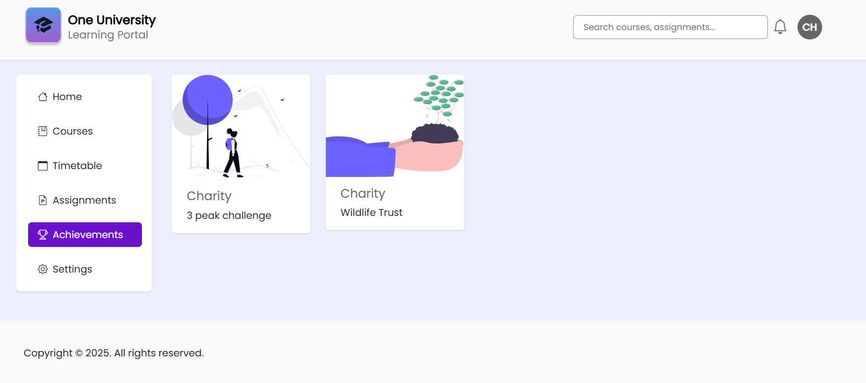 For the student achievements, I imagined having them as a cards to show a picture and the title of the achievement.