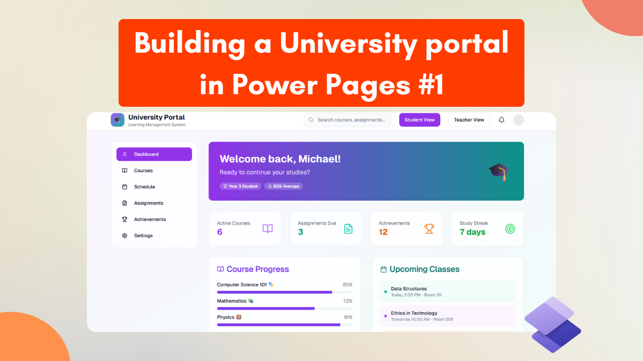 Fast forward to today, and I’m working with Microsoft Power Pages. That’s when I thought: why not recreate a university portal in public? It fits the use case for the platform well and I will be able to document process step-by-step, sharing my design decisions, technical challenges, and lessons learned along the way.